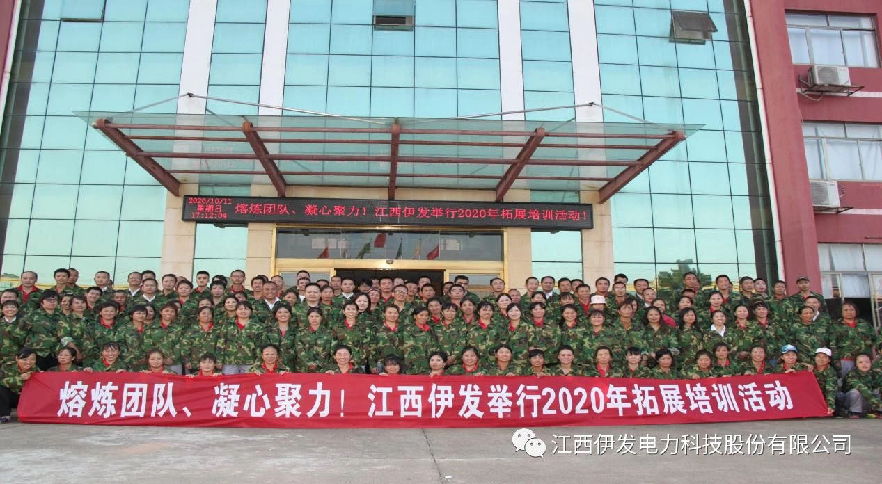為進一步豐富企業文化,增強員工拼搏意識,體現公司團結氛圍,展示伊發風采,激勵廣大員工用信念凝心、用擔當聚力,在企業發展中展現新作為。2020年10月11日,江西伊發電力科技股份有限公司開展“熔煉團隊,凝心聚力,江西伊發2020年拓展培訓活動”,公司總裁、黨委書記黃美園帶領全體員工共同參與拓展培訓。