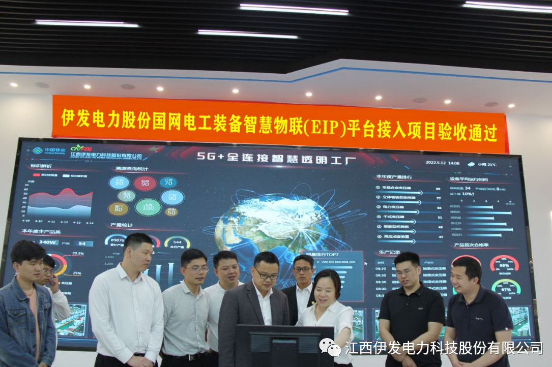 伊發電力為積極響應并全力配合國家電網電工裝備智慧物聯平臺(EIP)項目,從2021年11月開始,在江西移動撫州分公司專家的極力配合,公司組織團隊刻苦攻堅,歷經6個月的艱苦奮斗,嚴要求、高質量、高標準地完成了項目建設以及各項驗收資料的整理和歸檔工作,公司研發的高壓開關柜和高能效變壓器分別于2022年5月10日和5月12日相繼通過國家電網有限公司驗收。通過此次平臺接入,實現了電網企業、電工裝備制造商、第三方服務機構互聯互通和信息共享。